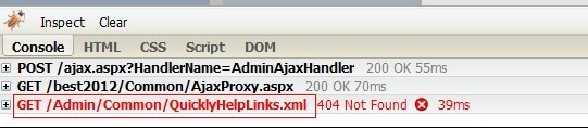 原因分析:通过对错误提示的分析,初步判断是需要连接的文件丢失了,然后我们利用火狐浏览器的FIREBUG插件重新打开页面,发现当点击“快速上手”的时候,从火狐浏览器中出现下图的提示