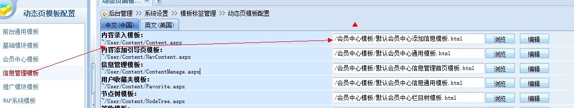 解决方案:在后台动态页面指定正确的添加信息模板就可以,