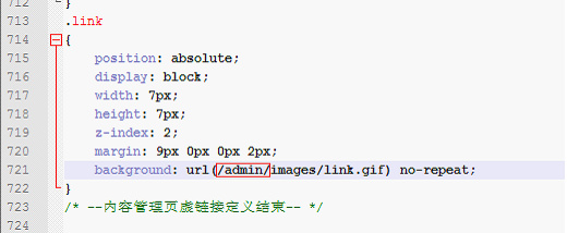 2、修改AdminBlueTheme主题样式,修改 WebSiteApp_ThemesAdminBlueThemeMasterPage.css文件第721行,去除‘/admin/’,之后主题可以显示虚链接小图标。