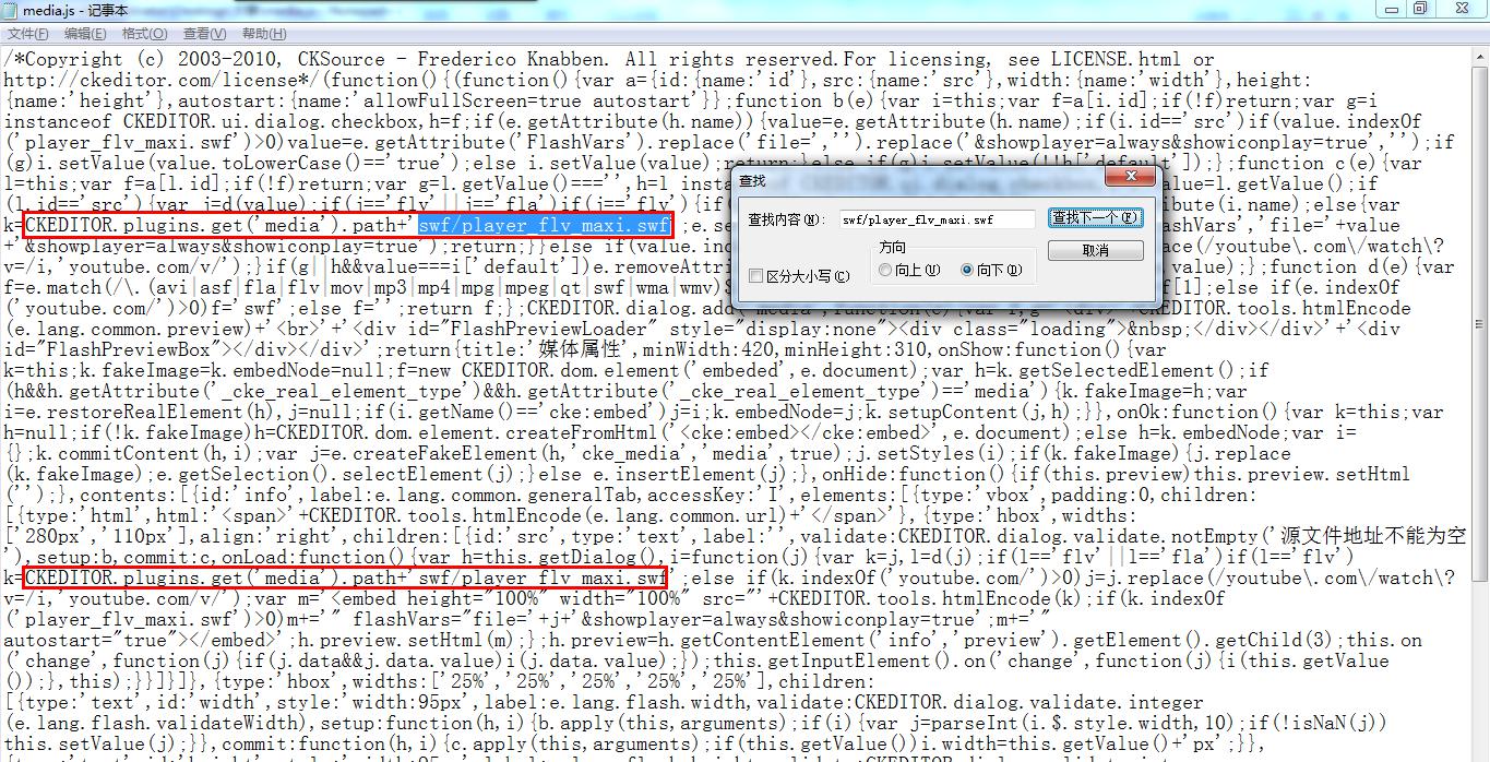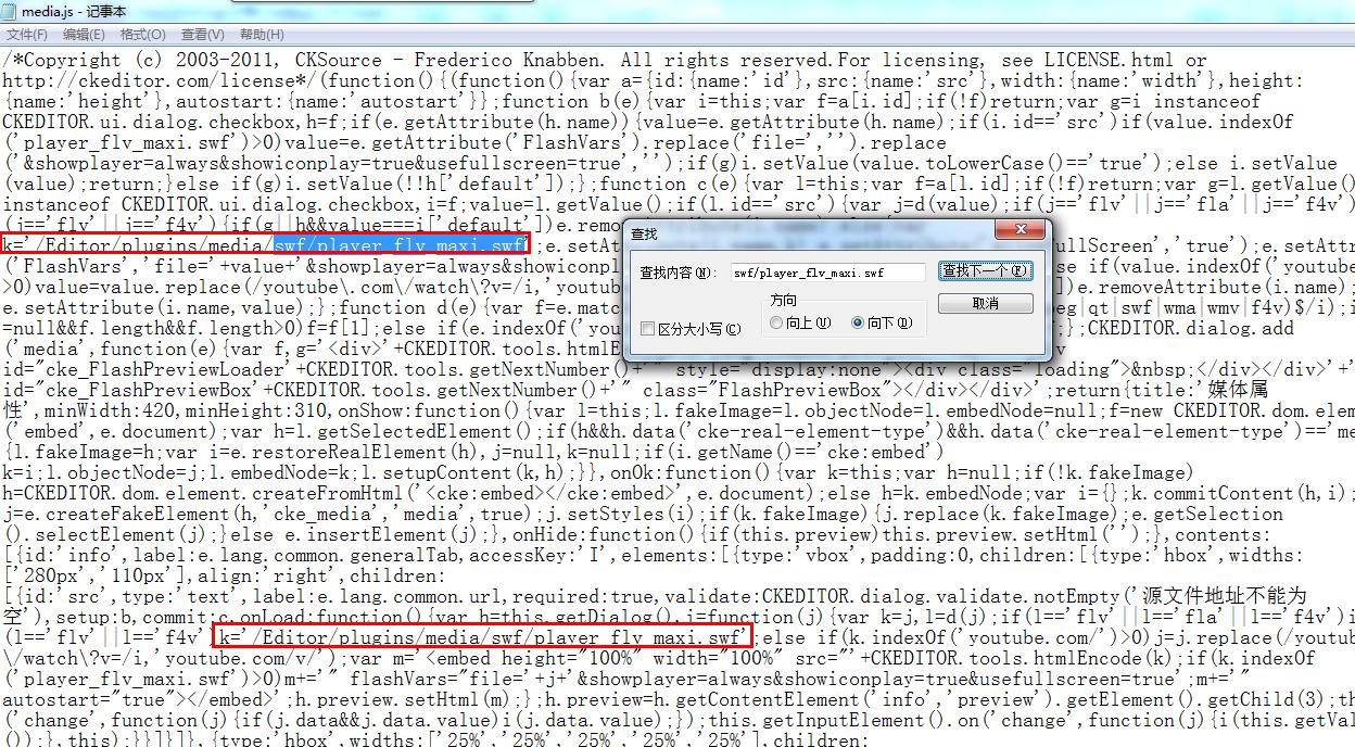 查找“swf/player_flv_maxi.swf”定位到两个位置。直接修改k的赋值为: