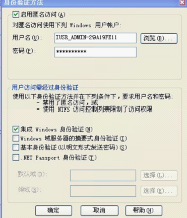(1)查看IIS管理器中站点安全设置的匿名账户是否被禁用,如果是,请尝试用以下办法启用:
