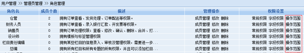 角色权限中各个操作范围设置的解释
