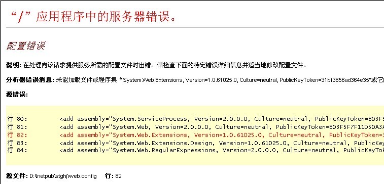 问题分析:网上查询Web.Extension关键字都是个ajax有关的组件,所以想到重装ajax试试