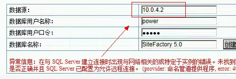 解决方案:加上数据库默认端口1433。像上面截图所示,即数据源正确应填入:10.0.4.2:1433