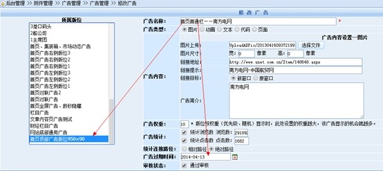 问题分析:用所有的浏览器打开都无法正常显示,可知并不是浏览器兼容问题,通过分析可知很有可能是广告已经过期,进入后台点开此广告发现广告确实过期。