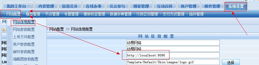 注意:网站地址的设置要正确