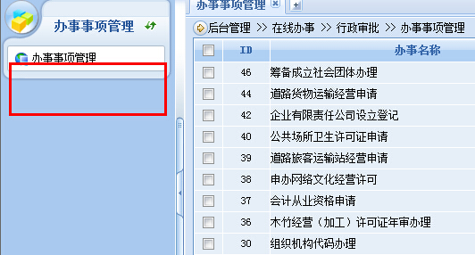 网站使用普通管理员设置好办事事项管理权限之后,登录发现办事事项管理页面左侧没有对应的节点,没办法添加新的办事事项。