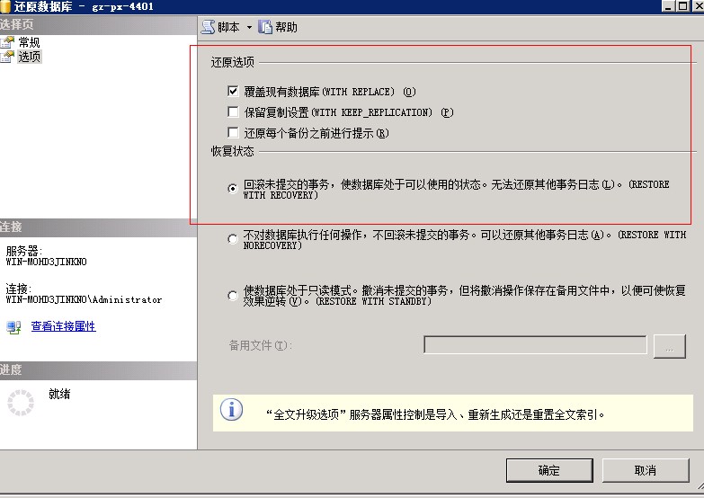 提出问题:给客户远程部署网站时,还原数据库操作过程中除了问题如下