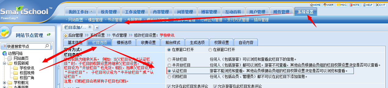 解决方案:选择栏目类型为认证栏目。