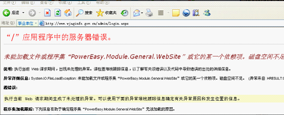 问题分析:环境问题,如:IIS问题 .NET问题等