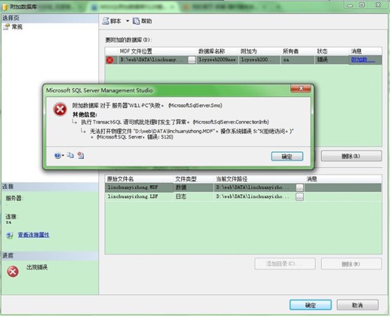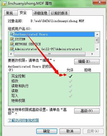 附加数据库权限不足 来源:本站原创 点击数: 次 发布时间:2014年09月30日 问题描述:给客户做网站迁移的时候,附加数据库会出现这个错误 解决办法:看报错提示应该是数据库文件访问权限不足,于是找到数据库文件,添加如图用户,修改权限后保存!问题得到解决