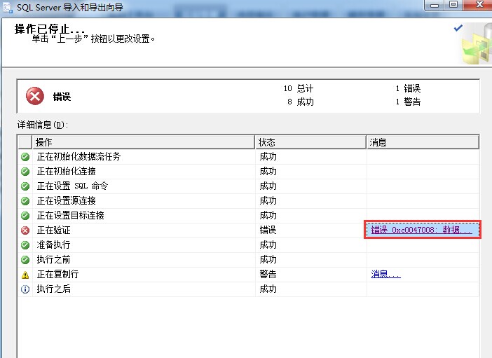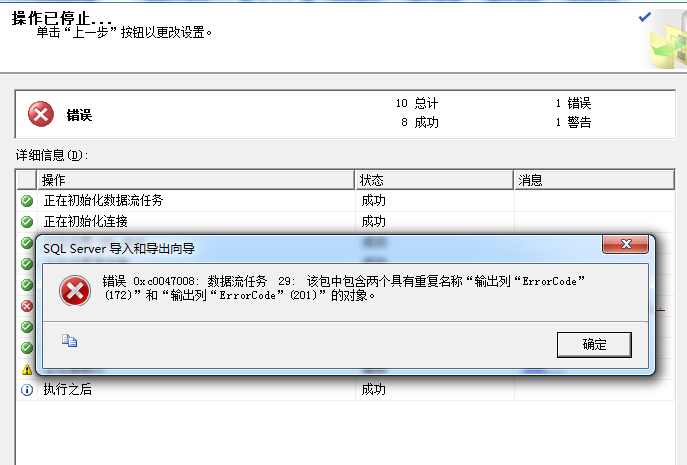 动易.Net版系统的数据库进行数据导入/导出操作时,时常会遇到如下错误:“错误 0xc0047008: 数据流任务29”的错误。如下图所示: