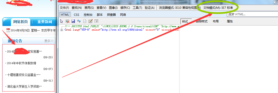 问题描述:文章列表设置了日期浮动靠右之后,发现只要IE浏览器的文档模式处于IE7 标准,无论浏览器模式选择7、8、9、10等,文章列表都会错位一行。