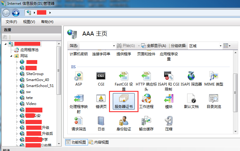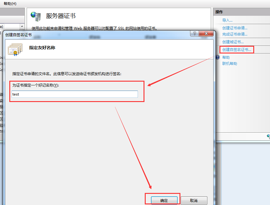 生产环境下的服务器证书通常是向CA申请的。需要花不少的银子和时间,开发/测试环境下的服务器证书在IIS下即可完成生成。如下图所示: