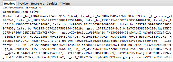 解决问题: 在IIS官方论坛的帖子HTTP 400. The size of the request headers is too long中得知,这个错误是Http.sys返回的,请求头长度限制是由注册表HKEY_LOCAL_MACHINESystemCurrentControlSetServicesHTTPParameters中的两个参数决定的:MaxFieldLength与 MaxRequestBytes,缺省值都是16384字节,详见Http.sys registry settings for IIS。由于修改这两个设置需要重启IIS,并且只是表面上解决问题,所以我们没有立即采取这个方法。又回过头来在Chrome中查看请求头,突然发现cookie的值好长。