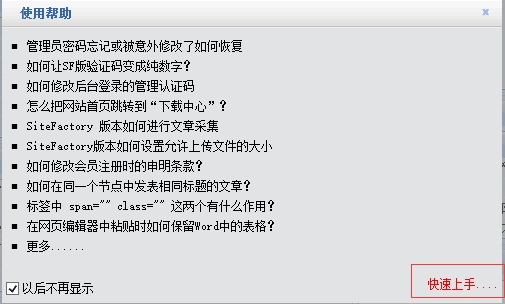 解决办法:XML文件丢失,新建一个QuicklyHelpLinks.xml文件。Admin/Common/QuicklyHelpLinks.xml