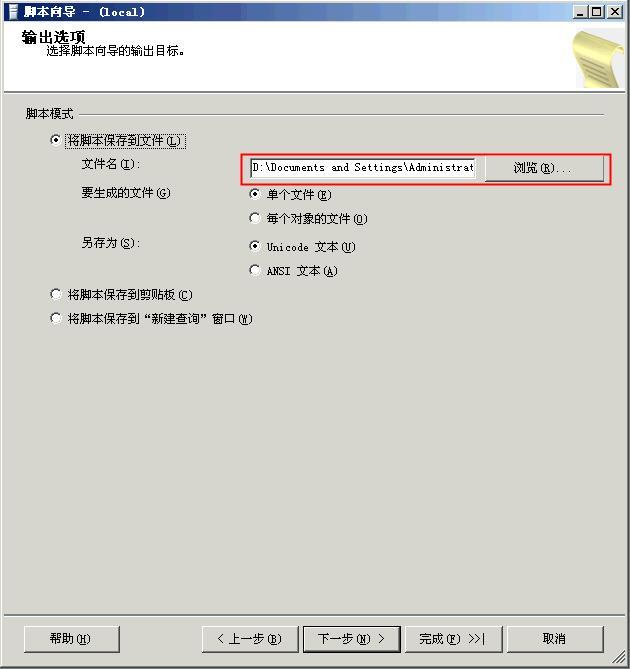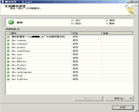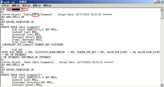 9、等待脚本生成完毕,进入存放目录用记事本打开脚本文件,修改库名为万网提供的数据库名,并确保您的脚本中所有者是 DBO,否则请替换成 DBO: