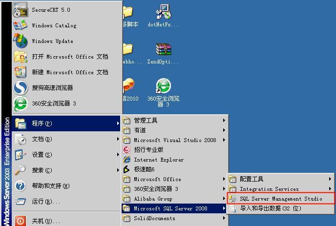 1、打开本地计算机上的 SQL Server Management Studio 客户端软件: