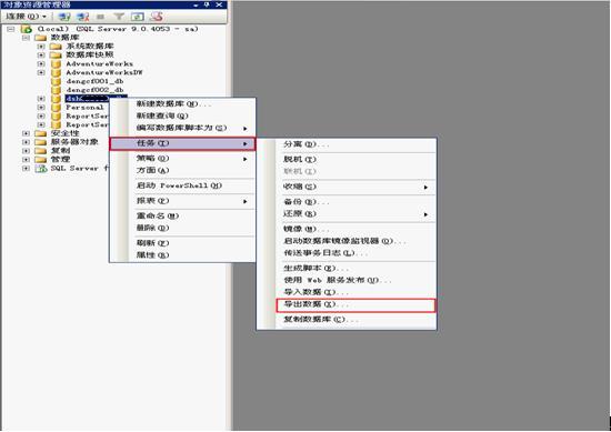 2、点击您本地计算机上的数据库右键-任务-导出数据: