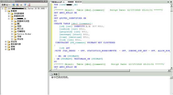 2、并点击新建查询,拷贝您记事本中的 SQL 脚本代码到上图显示的查询分析器中,点击分析脚本,如果没有语法错误,就点击执行脚本,直到执行完毕。到此,您的数据库架构已经完整的导入到万网的数据库服务器。