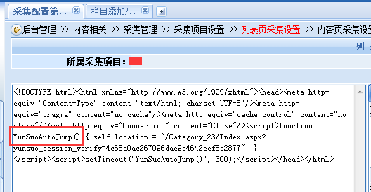 【问题】在新建采集项目,进入第二步列表页采集设置时获取不到真正的栏目页源码,而显示如下信息: