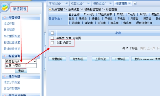 第二步:数据源标签定义新增参数:找到文章内容数据库标签,定义新增参数,系统设置——模板标签管理——标签管理,找到文章_内容页标签点击编辑后应用保存。