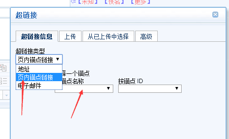 2、添加锚点链接,选中内容,点击【超链接】按钮,超链接类型选择【页内锚点链接】,选择锚点名称,发布之后点击锚点,即可跳转到相应位置。