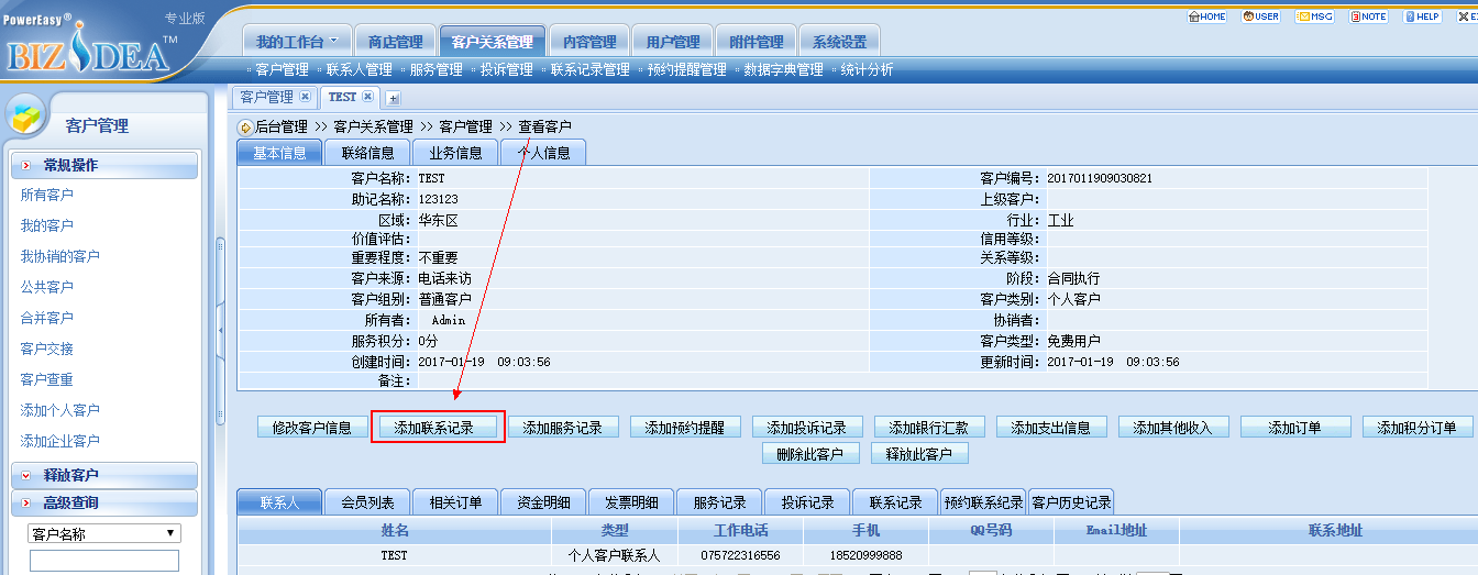 问题分析:这个添加联系记录,是要与客户紧密联系起来。