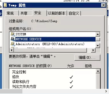 但有时候发现更改后还是报错,最后再去更改windows/temp权限设置里面把Network service的修改权限加上就行