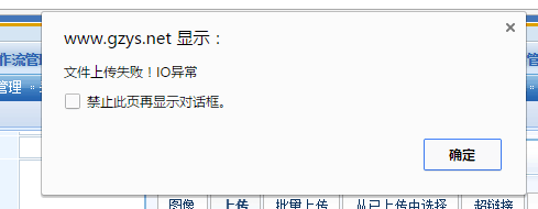问题描述:上传文件,无论大小,都弹出错误:“文件上传失败!IO异常”。