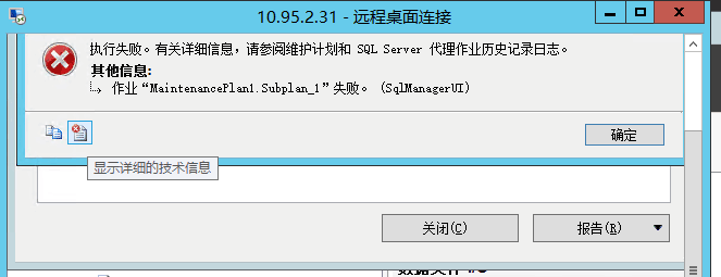 问题描述:通过远程桌面远程到服务器,在SQL新建维护计划,执行的时候,报错如下: