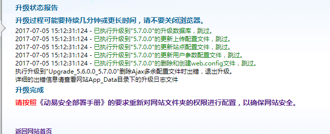 解决:新网站目录无修改写入权限、在升级前给网站目录最大权限之后,升级成功之后再按照配置文档进行目录权限配置
