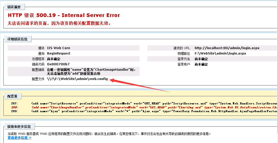 打开网站出现唯一密钥属性”name“设置为”ChartImageHandler"时,无法添加类型为”add“的重复集合项。