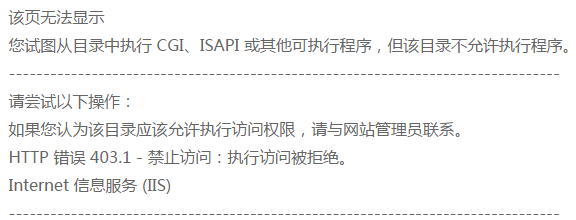 在IIS里排除CGI和ISAPI正常设置后,后面发现管理目录和根目录下一个文件夹重名了,当时遇到的是模板文件名和管理目录重名了。