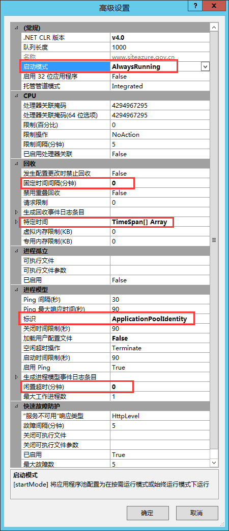问题解决:将程序池的启动方式设置为AlwaysRunning,并将闲置超时时间设置为0分钟。