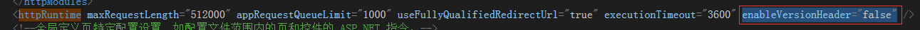 问题解决:根目录web.config 的httpRuntime节点上加enableVersionHeader="false",具体如下图