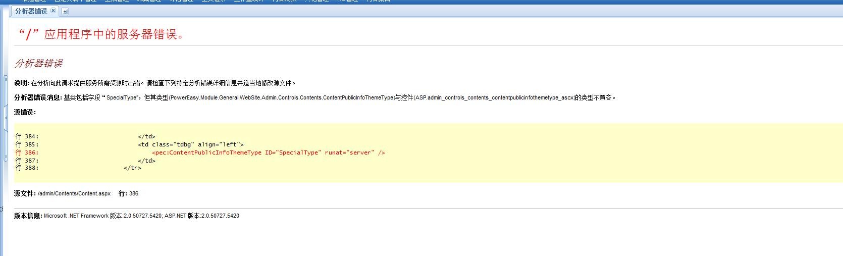 问题描述: 添加、修改文章的时候报应用程序中的服务器错误(分析器错误)。