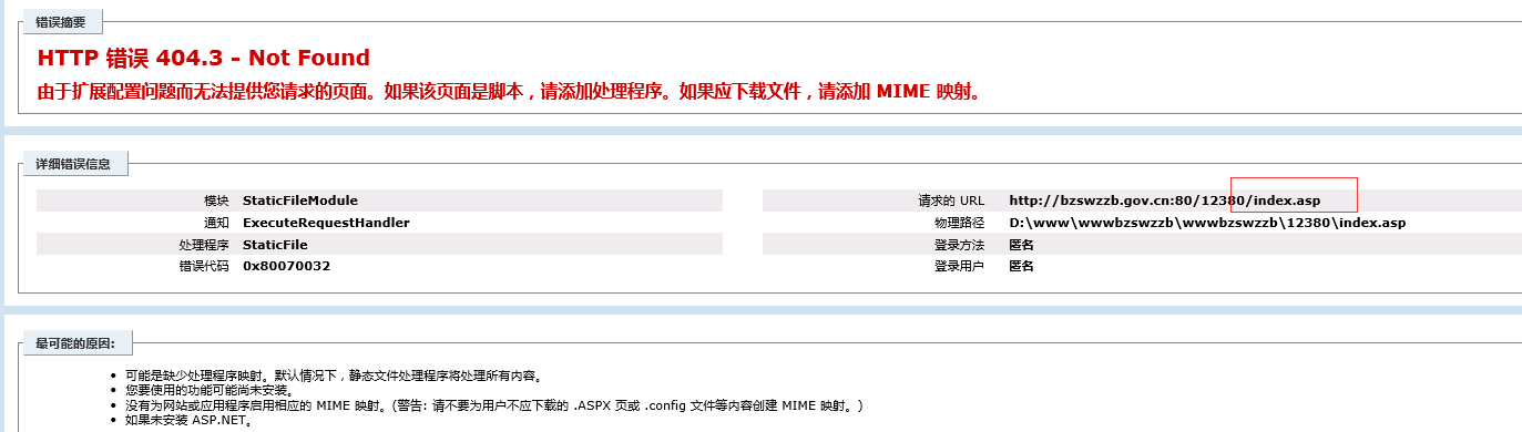 该段内容取C:\Windows\System32\inetsrv\config\applicationHost.config文件中,继承IIS中*.asp文件设置