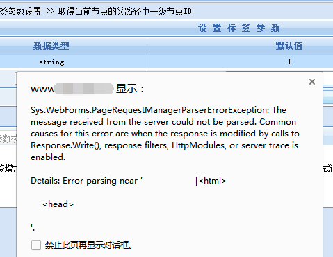 问题描述:修改标签,编辑参数类型的时候报错“the massage recevived from the server could not be parsed”具体如下图