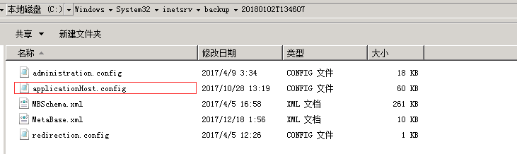 记住上面命令产生的备份文件,默认产生的IIS 配置文件存放在c:windowssystem32inetsrvbackup