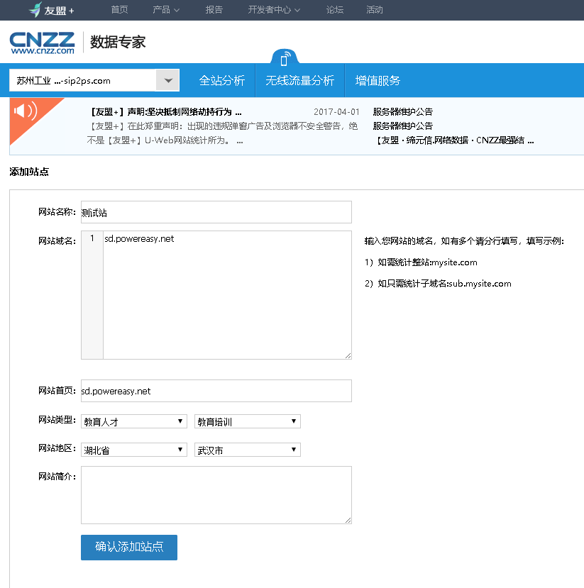 想要查询网站的年访问量信息,需要在我们网站的页面中插入一段第三方统计代码,这里我以CNZZ为例: