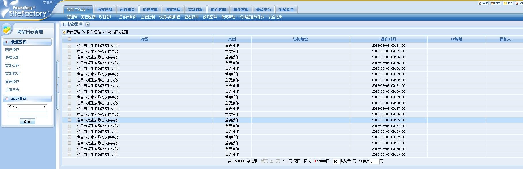问题描述:网站日志显示大量的失败记录, 具体的问题是:栏目节点生成静态文件失败,试图除以零 解决方案: