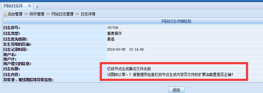 栏目节点生成静态文件失败,试图除以零 来源:本站原创 点击数: 次 发布时间:2018年03月05日 问题描述:网站日志显示大量的失败记录, 具体的问题是:栏目节点生成静态文件失败,试图除以零 解决方案: