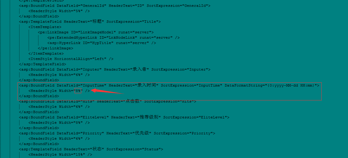 出现这种情况主要是屏幕分辩率不一致情况,可以根据实际情况修改AdminContentsContentManage.aspx文件,如下图调整具体列宽比例,或隐藏某列输出等