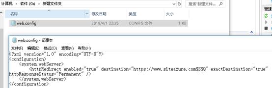 在IIS下搭建两个站点,一个http,一个https;然后http站点指向一个web.config,内容如下;(需要更改的就是地址栏),IIS绑定域名