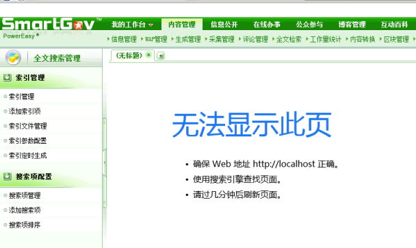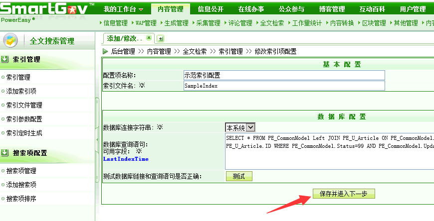 修改示范索引配置,点击保存并进入下一步。报错如下图: