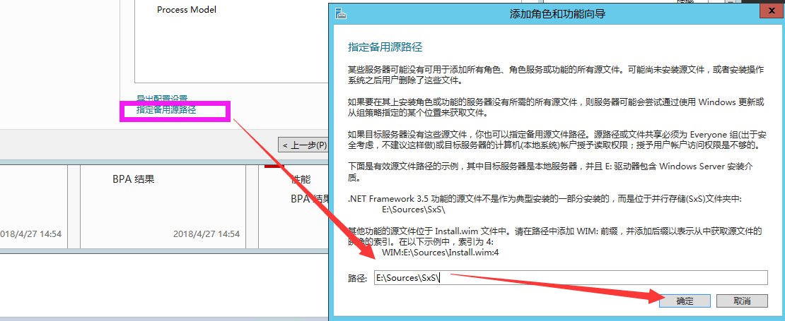 2. 如果安装报错:0x800f081f,那么请检查公网网络是否正常,如果正常,可能是连接微软 update 服务器链路不稳定导致更新失败,建议更换时间段重试;如果发现服务器没有连接外网,此时就不能通过网络安装,需要“指定备用原路径”(按照提示填写E:SourcesSxS,此处E:为操作系统的安装镜像文件目录),也就是通过本地进行安装。