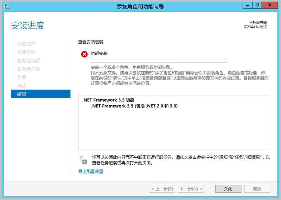 使用 Windows Server 2012 R2系统,发现在安装 .NET Framework 3.5.1 时报错,报错内容如下图所示。