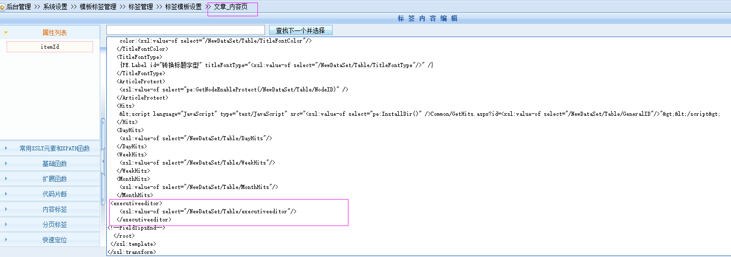 2.然后找到“文章_内容页”的标签点进去编辑,按照上面的其他字段的格式添加即可: