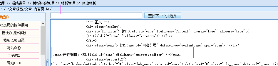 调用值的方法为:{PE.Field id="cone" fieldname="executiveeditor"}
